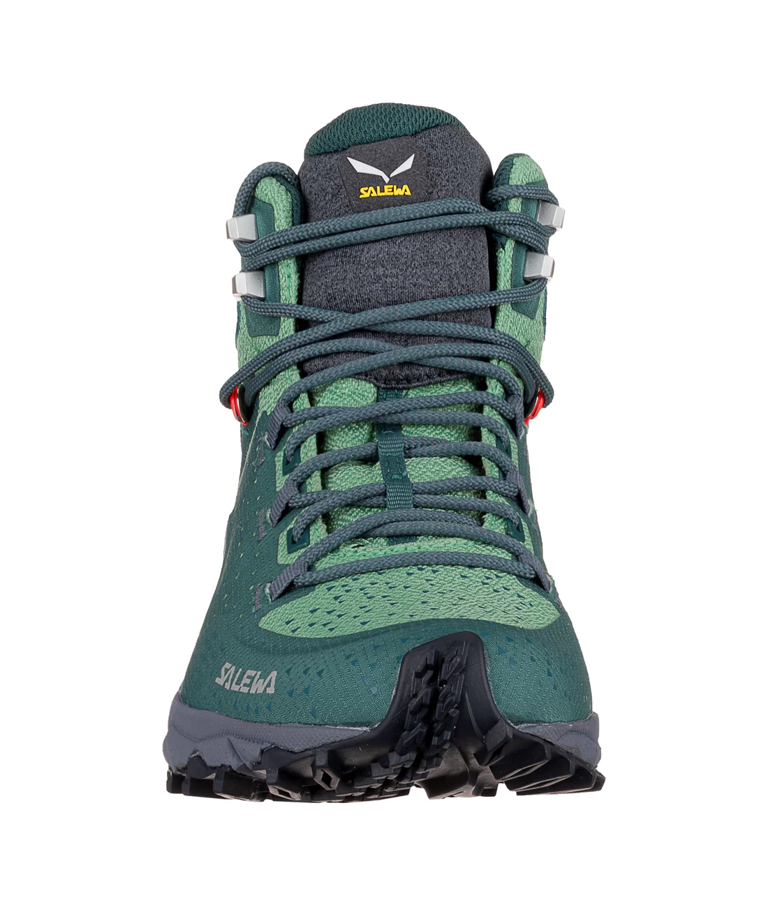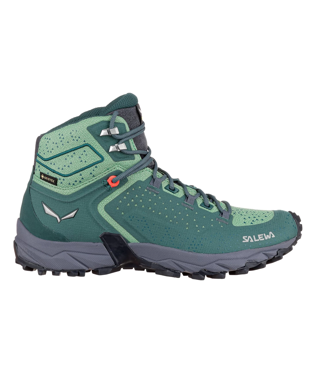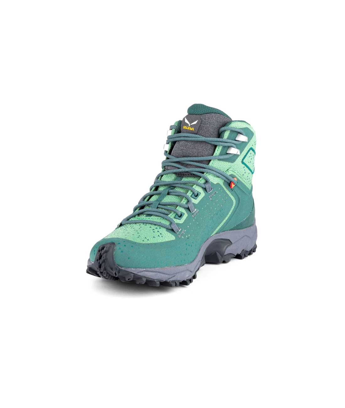 Der Alpenrose 2 Mid GORE-TEX® von Salewa ist ein speziell für Frauen entwickelter wasserdichter und atmungsaktiver Schuh mit femininem Design, der sich zum Speed Hiking und für andere temporeiche Bergaktivitäten eignet. Er hat ein leichtes, agiles und robustes Mesh-Obermaterial und eine GORE-TEX® Extended Comfort Membran für maximalen Tragekomfort unter wechselhaften Bedingungen. Ihre Füße bleiben bei nassem Wetter trocken, aber wenn Sie bei hohem Tempo zu schwitzen beginnen, kann die entstehende Feuchtigkeit trotzdem nach außen treten.