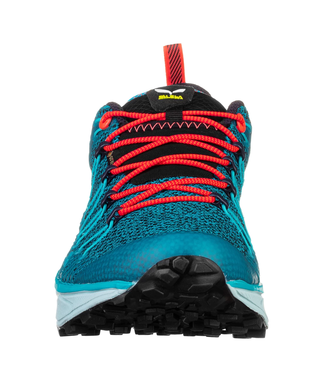 Ein schneller Speed Hiking Damenschuh mit einem wasserdichten GORETEX® Innenfutter, der auf Polsterung, Stabilität und Halt während längerer Touren auf felsigem Berggelände bei allen Witterungsbedingungen ausgelegt ist.