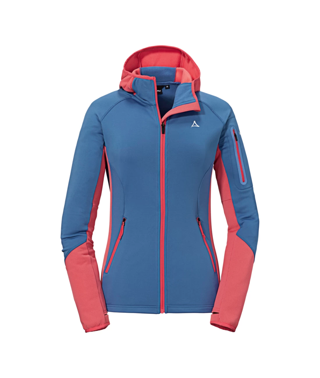 Sie wollen bei Ihren Bergtouren abseits der vollen Wanderwege nicht nur Multifunktionalität, sondern auch noch fantastisch Aussehen? Dann ist der Schöffel Fleece Hoody Ihre richtige Wahl. Er vereint Funktionalität und Style. Die verwendete 4D BODY MAPPING Technologie sorgt dabei zum einen für maximale Bewegungsfreiheit und zum anderen für ein hervorragendes Körperklima. Das Fleece Material ist nicht nur elastisch und sorgt für Wärme, sondern balanciert das Körperklima durch Atmungsaktivität und den hohen Feuchtigkeitstransport. Der sportliche Schöffel Fleece Hoody sorgt demnach für optimalen Tragekomfort und unterstützt Sie bei Ihren Bergabenteuern. Praktisch sind auch die Außentaschen sowie die Armtasche jeweils mit Reißverschluss.