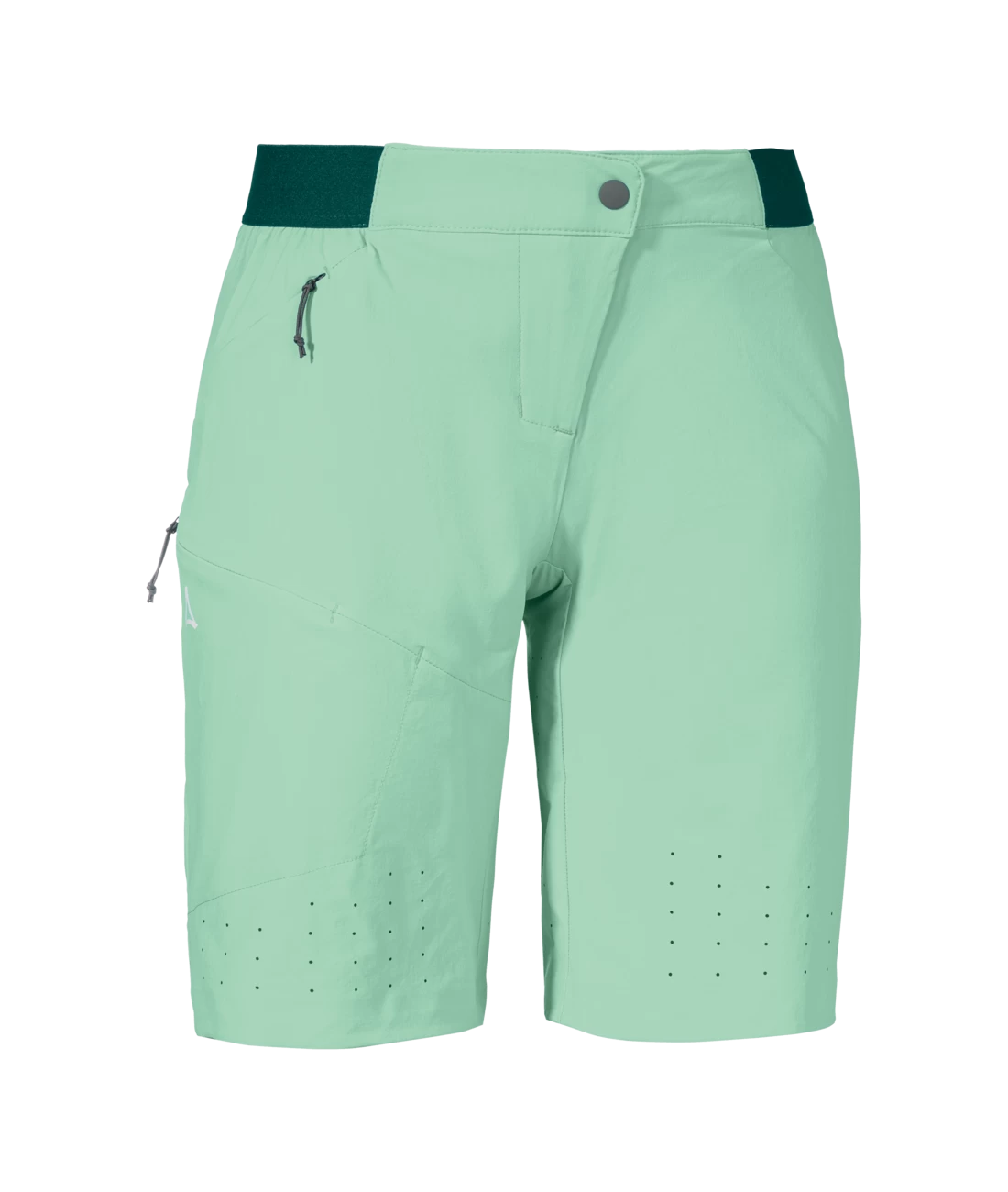 Die leichte Short von Schöffel ist perfekt zum Mountainbiken. Sie ist nicht nur leicht sondern zudem höchst atmungsaktiv und strapazierfähig. Der 4-Wege-Stretch sorgt für uneingeschränkte Bewegungsfreiheit, die zusätzlich durch den elastischen Bund unterstützt wird. So macht die Short von Schöffel jede Bewegung mit, sei es bei einer rasanten Abfahrt oder bei einem steilen Anstieg. Des Weiteren ist die Bike Short von Schöffel so geschnitten, dass Protektoren genügend Platz finden. Für zusätzliche Ventilation an heißen Tagen sorgen die Belüftungslasercuts. In der Oberschenkeltasche mit Reißverschluss können Sie Kleinigkeiten schnell und sicher verstauen.