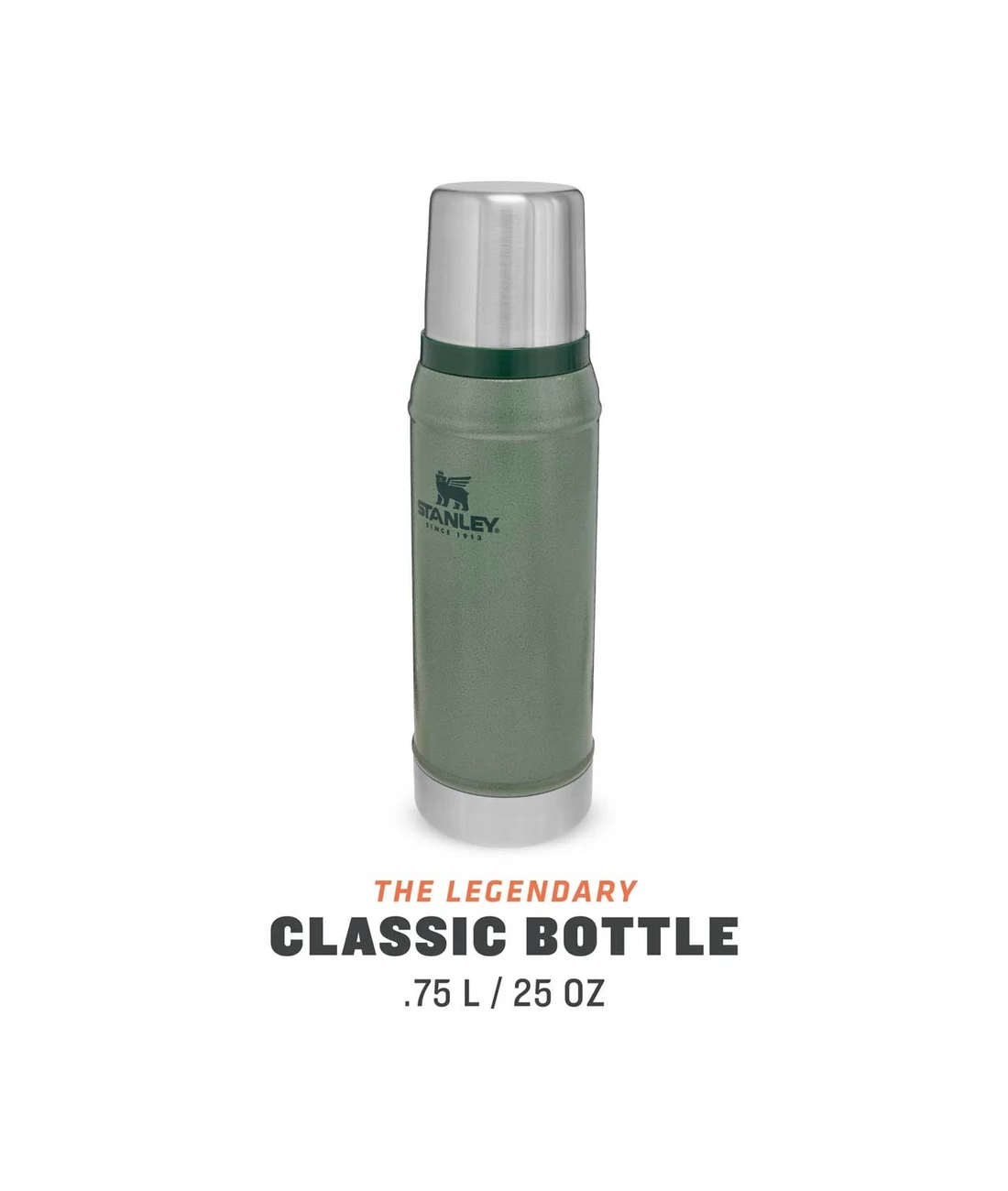 Die aus rostfreiem 18/8 Edelstahl gefertigte Stanley CLASSIC VAKUUMFLASCHE ist mit einer schützenden, grünen Hammerschlaglackierung versehen. Die doppelwandige Vakuum-Isolation hält Getränke bis zu 20 Stunden heiß oder kalt. Über dem Flaschenverschluss sitzt ein Trinkbecher, der ebenfalls isolierend ausgelegt ist. Durch die 5 cm weite Öffnung lässt sich die Flasche sehr gut reinigen. BPA-frei!