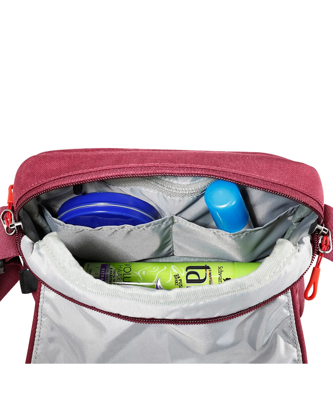 Kleine, sportliche Umhängetasche. Sie bietet Platz für die wichtigsten Habseligkeiten, besitzt einen pfiffigen Magnetverschluss.