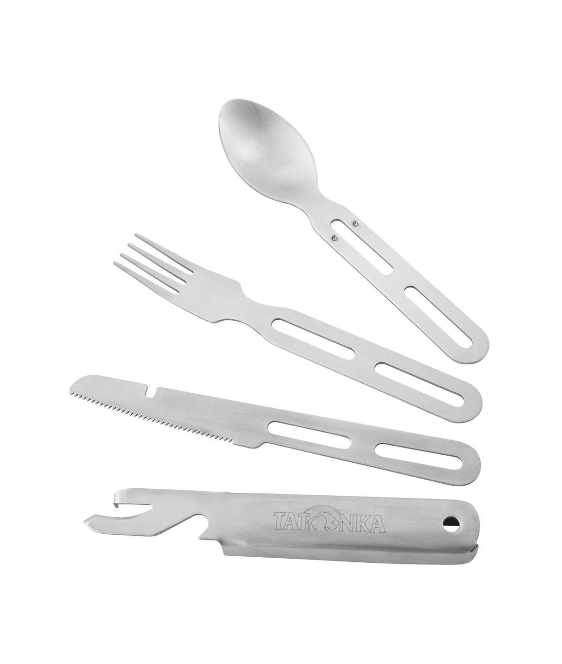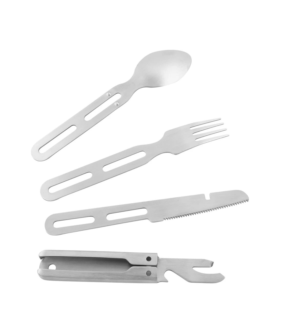 - Set aus Messer, Gabel, Löffel und Flaschen-/Dosenöffner