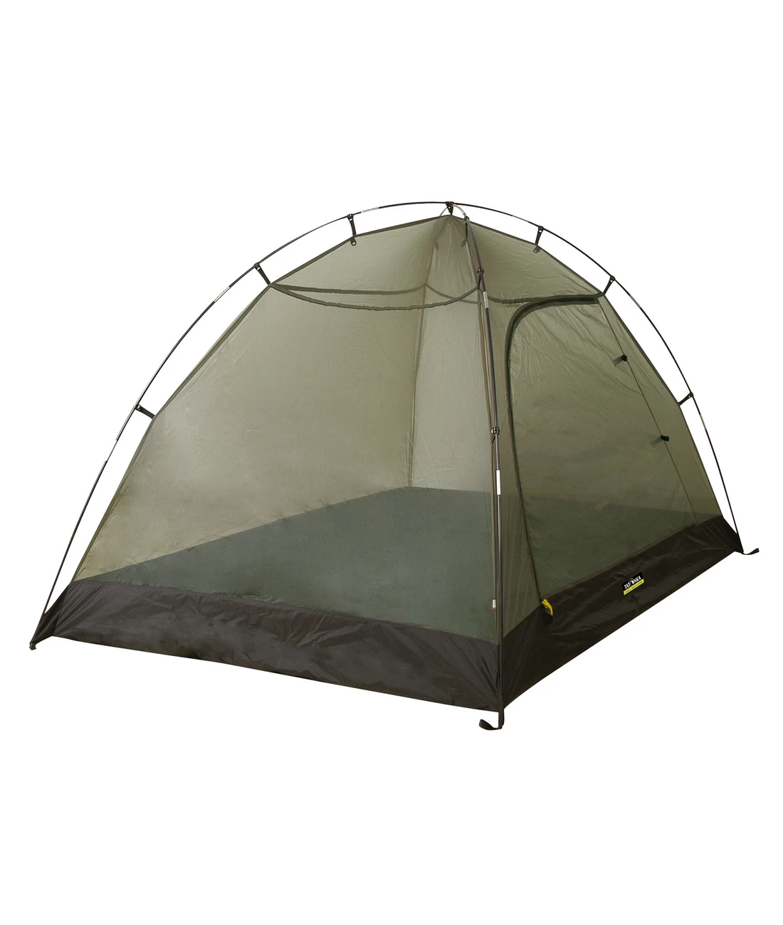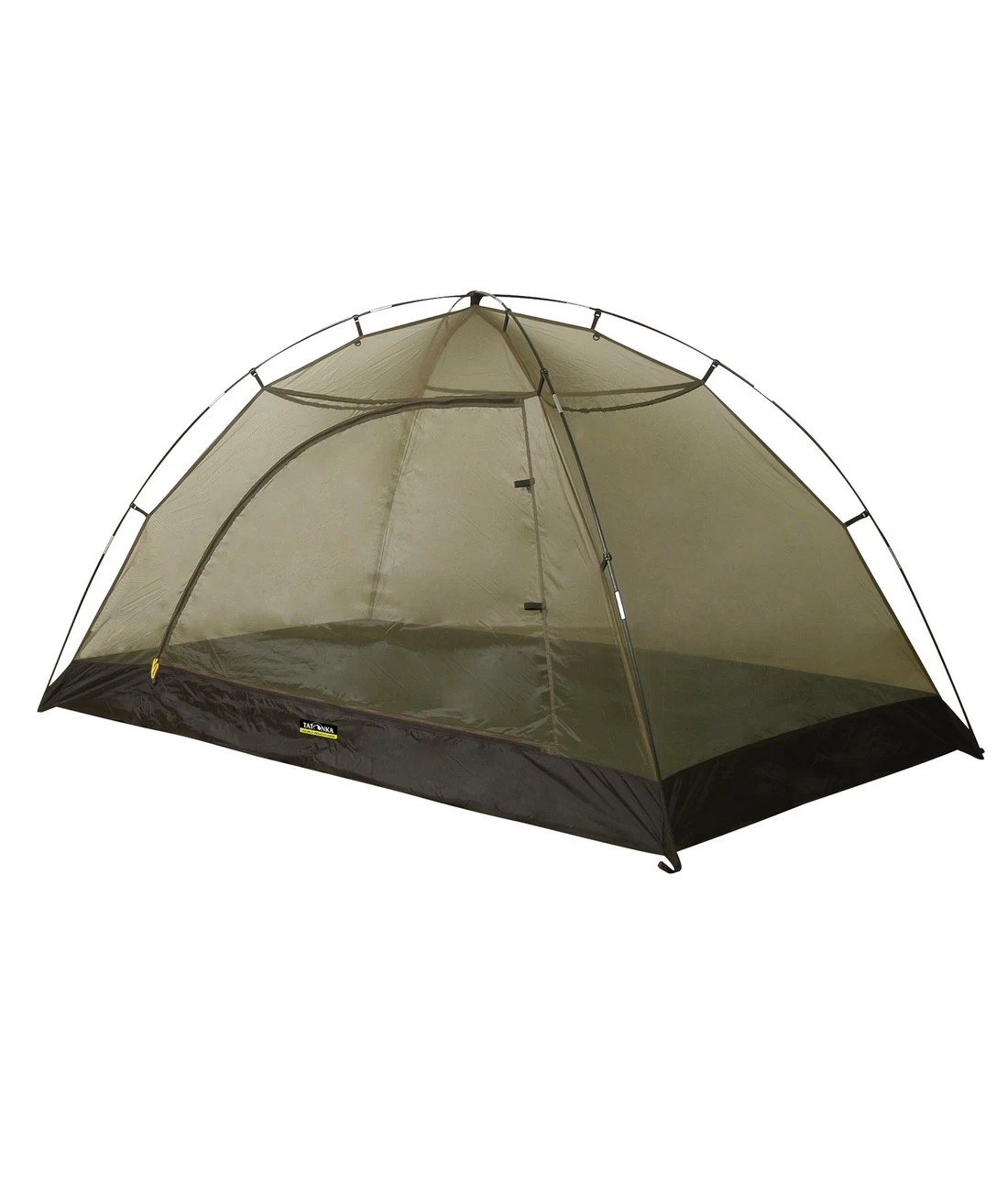 Selbsttragendes Moskitozelt. Als Schlafplatz für zwei Personen ausgelegt, wehrt die Kuppelzelt-Konstruktion zuverlässig Mücken ab. Kriechtiere hält der stabile Boden draußen. Seine Schutzfunktion übernimmt der Moskito Dome auch gerne bei Indoor-Schlafgelegenheiten mit zweifelhaftem Hygienestandard. Außerdem lässt sich das Zelt auch gut als Vorratszelt einsetzen.