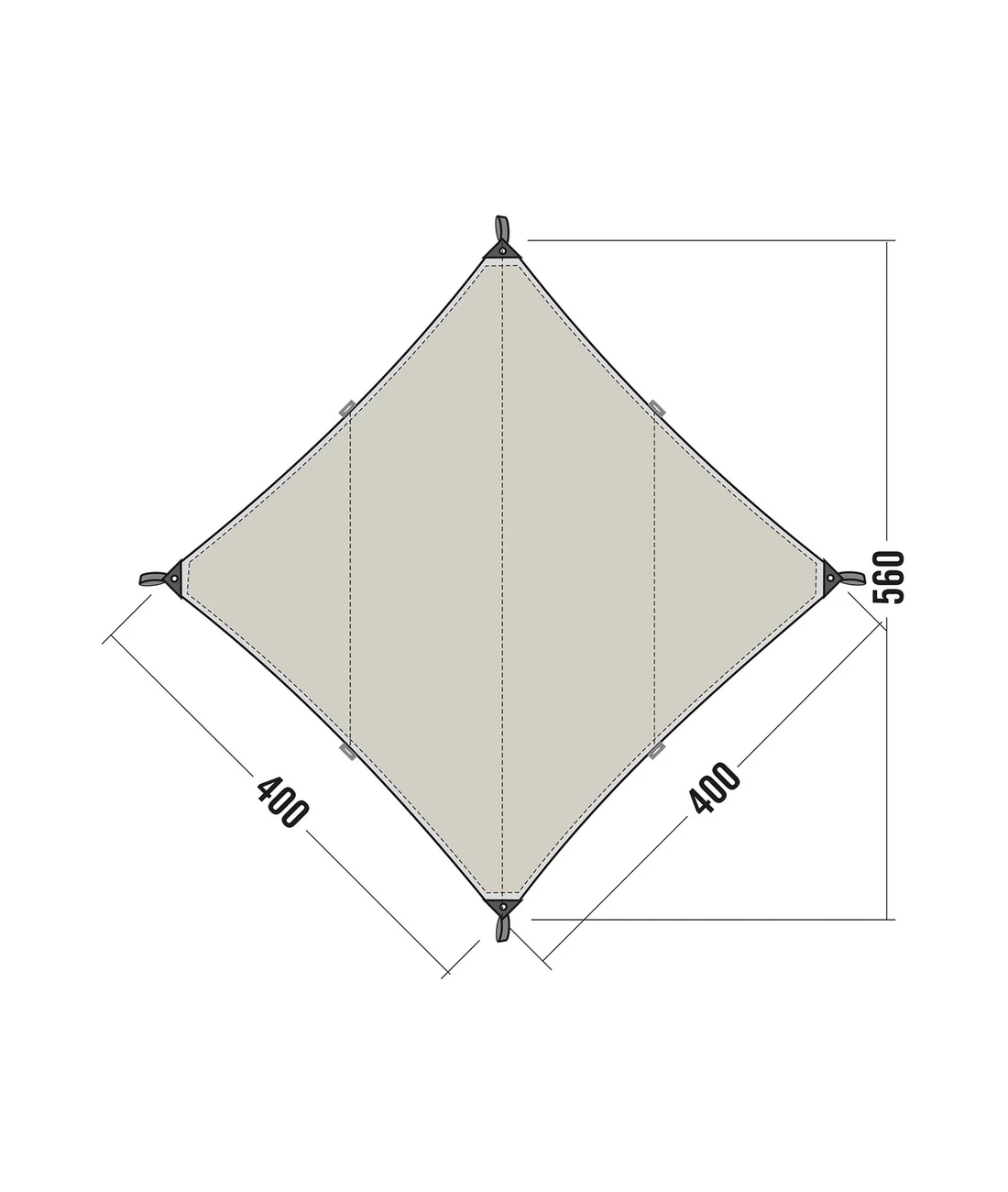 Tarp aus reißfestem Baumwollmischgewebe mit den Maßen 400 cm x 400 cm. Das Tarp 3 TC bietet sich insbesondere für den Einsatz in warmen Regionen an, da das Material auch unter starker Sonneneinstrahlung eine sehr gute UV-Stabilität bietet. Die Diagonale als Firstlinie über eine Schnur gelegt, lässt es sich dank der bogenförmig geschnittenen Kanten elegant abspannen. Der Baumwollanteil des Gewebes quillt bei Nässe auf und macht das Tarp wasserabweisend.
