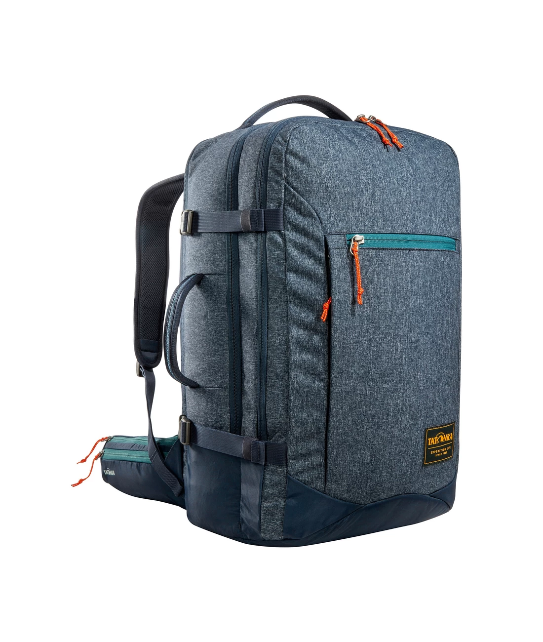 Handgepäcktauglicher Reiserucksack mit zwei Hauptfächern aus strukturiertem, PFC-freiem Material. Der Traveller Pack 35 punktet durch die ungewöhnliche Melange-Optik, eine textile Haptik, die PFC-freie Ausrüstung und eine top-funktionale Ausstattung. Er besitzt zwei Hauptfächer; das vordere ist mit einem Organizer versehen, das hintere ist mit Flauschklettflächen belegt. Sie ermöglichen die perfekte Organisation der Reiseausrüstung mithilfe kleiner Taschen mit Hakenklett-Rückseite, die sich einfach ankletten lassen. (Diese haben verschiedene Anbieter im Programm). Der Rucksack verfügt zudem über ein von außen zugängliches Laptopfach sowie ein Frontfach mit Reißverschluss. Verstaubare Schultergurte und ein abnehmbarer Hüftgurt, der sich separat als Hüfttasche oder Sling Bag nutzen lässt, vervollständigen die Ausstattung.
