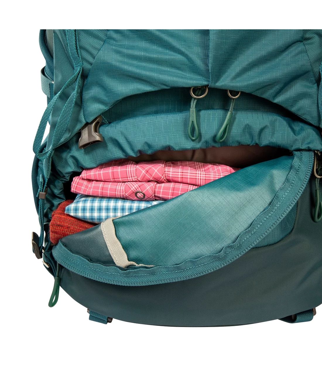 Tatonkas Trekkingklassiker für Frauen. Der schlanke Damen-Trekkingrucksack Yukon Women, ausgelegt für Lasten bis 25 Kilogramm, ist ein echtes Komfortwunder. Sein leichtes und stabiles V2-Tragesystem Women lässt sich optimal anpassen, der Hüftgurt mit den dreidimensional ausgeformten Hüftflossen schmiegt sich perfekt an das Becken und bietet eine sehr effiziente Lastübertragung. Der Yukon Women besitzt eine große Frontöffnung, die sich bis in den Seitenbereich aufziehen lässt, und eine umfangreiche Ausstattung. Die Schnittführung des Packsacks verhindert mit der seitlich hochgezogenen Bodennaht das Eindringen von Wasser an dieser wichtigen Stelle.