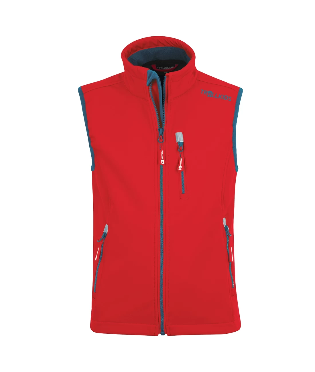 Die KIDS TROLLFJORD VEST ist eine universell einsetzbare, wasserabweisende und atmungsaktive Softshell-Weste für Mädchen und Jungen. Sie ist mit warmem Fleece gefüttert und verfügt über zwei Hüfttaschen mit Reißverschluss sowie eine Brusttasche mit Reißverschluss.